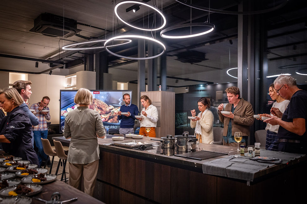 Miele stelde de indrukwekkende Pearl Beige combi-steamer voor, afgewisseld met een inspirerende rondleiding in de toonzaal vol maatwerk in verfijnd design.